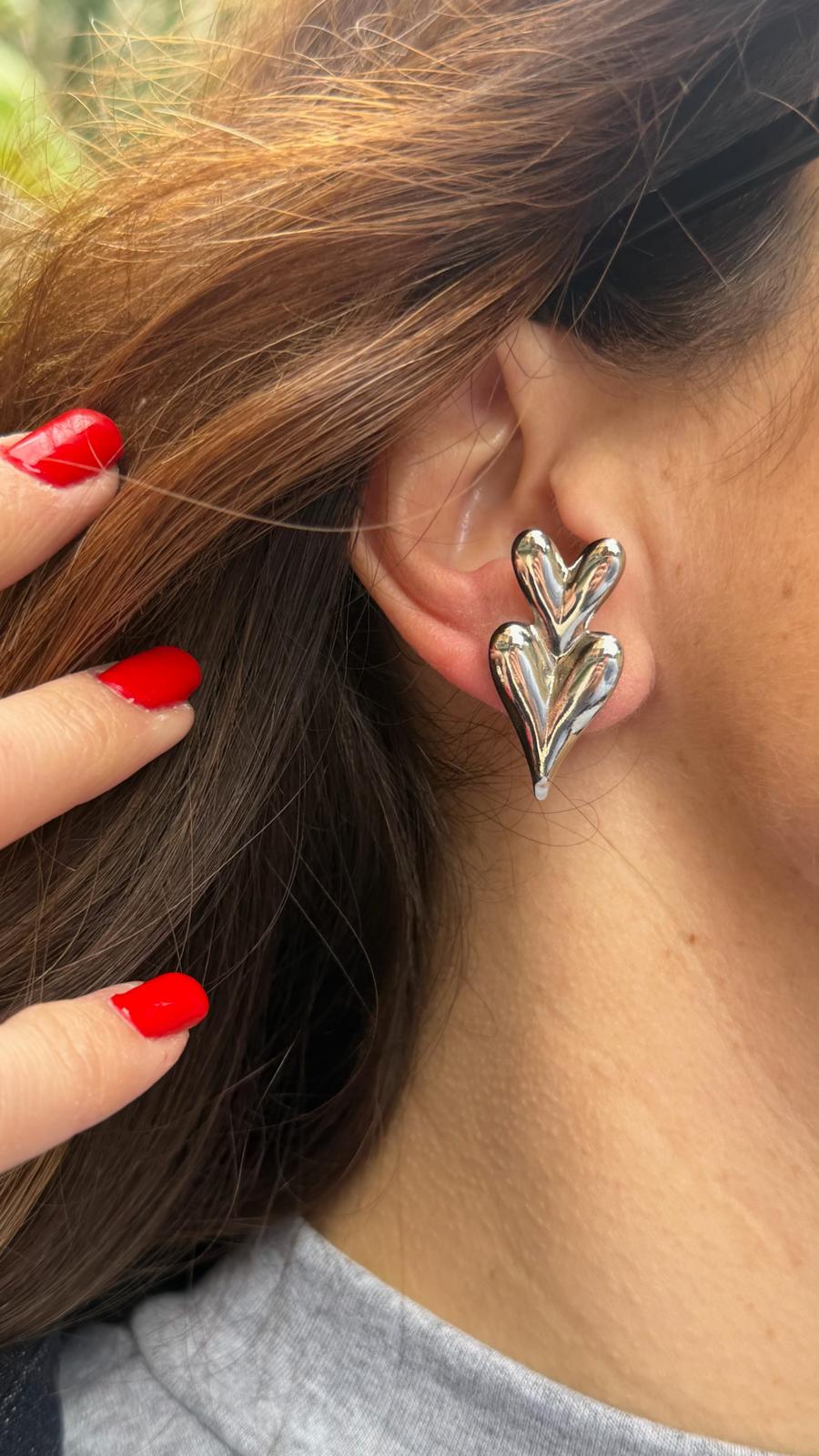 Orecchini pendenti a forma di cuore in acciaio, Perfetti per completare look quotidiani o per aggiungere un dettaglio prezioso alle occasioni speciali.