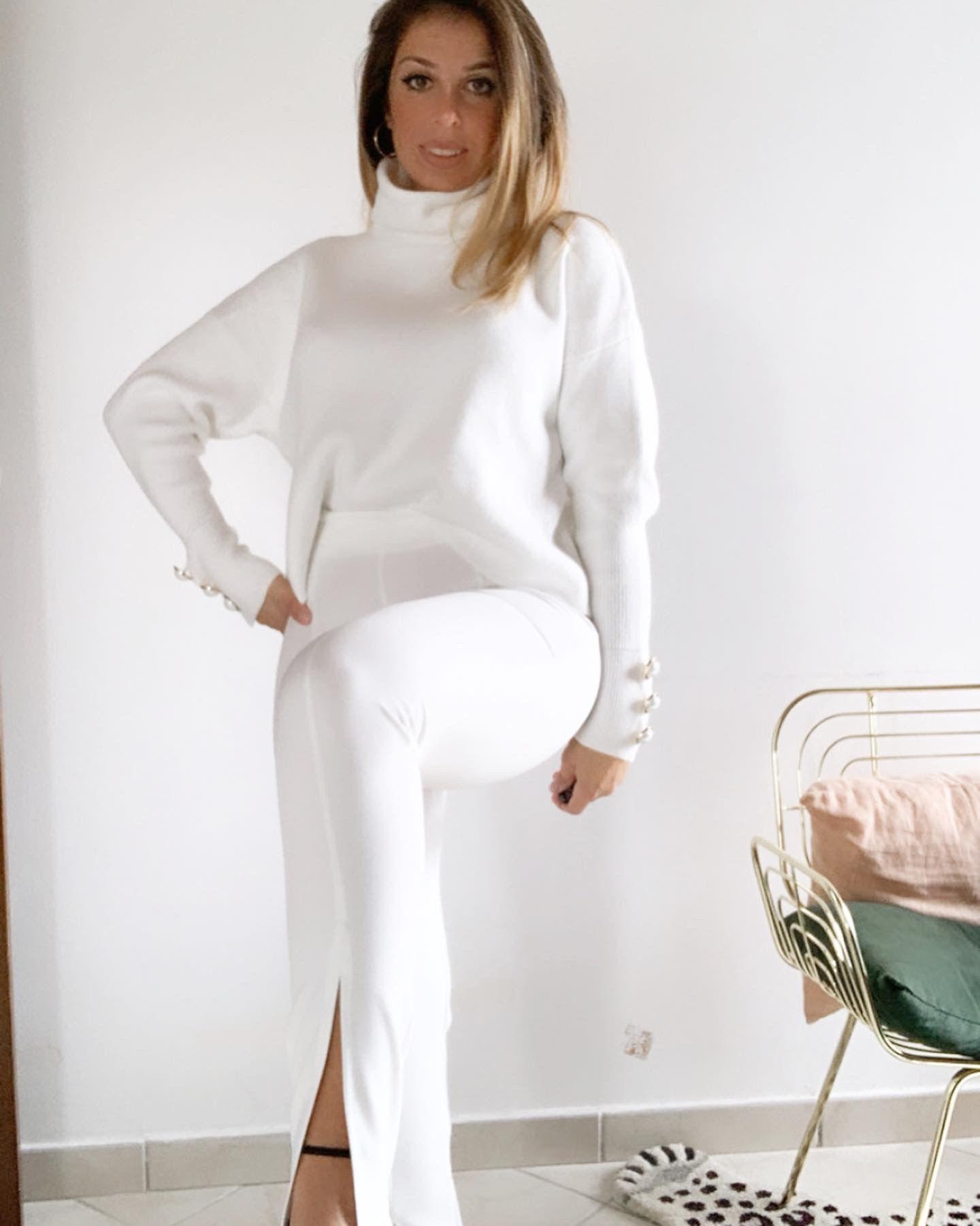 Pantalone da donna classico bianco, gamba stretta e spacchetto sul collo del piede. Chiusura con zip in vita