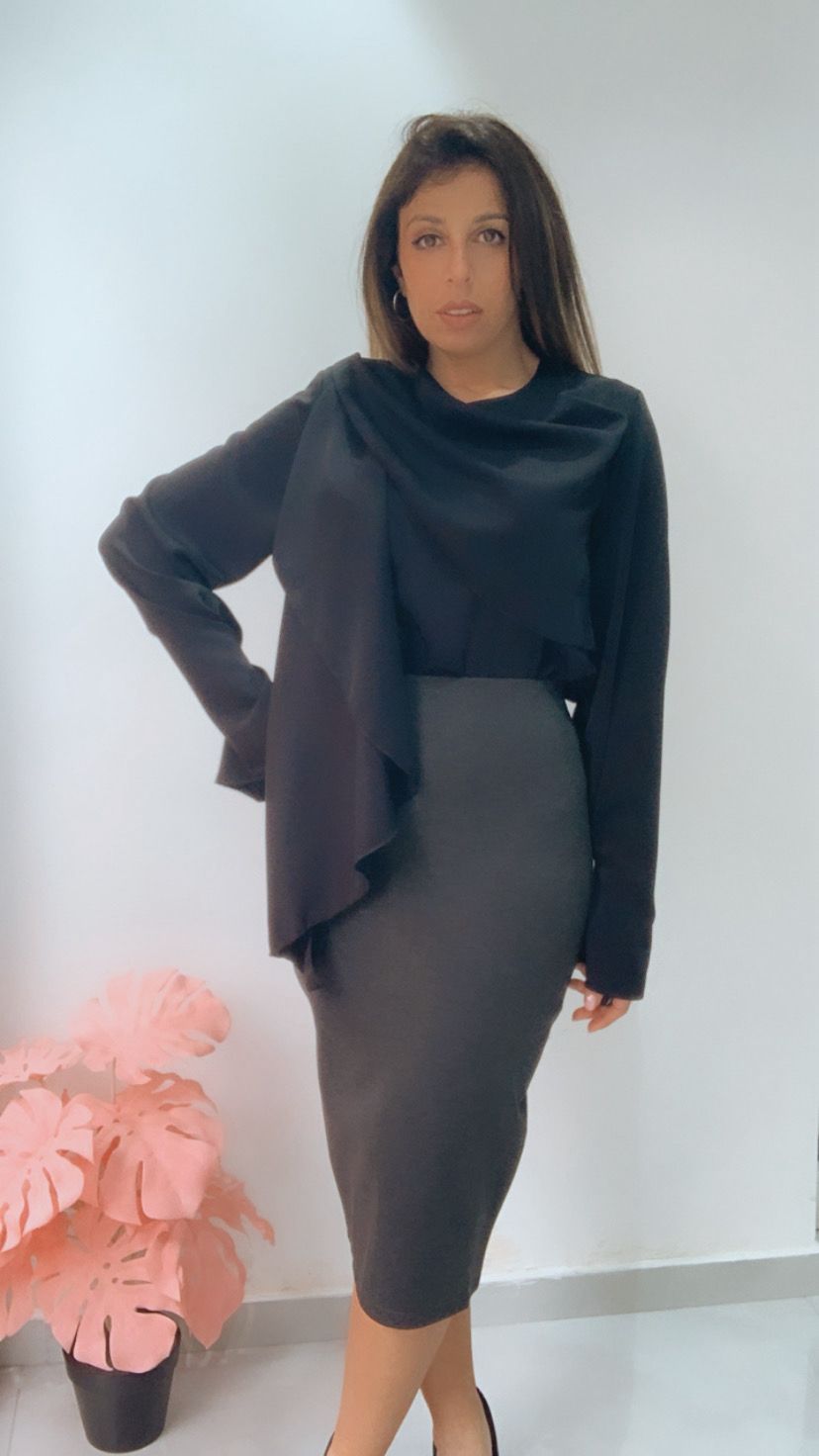 "Abito midi nero di Mira Store: tessuto morbido che non segna e taglio super femminile. L’ho messo a una cena e mi hanno chiesto tutti dove l’avessi preso."
