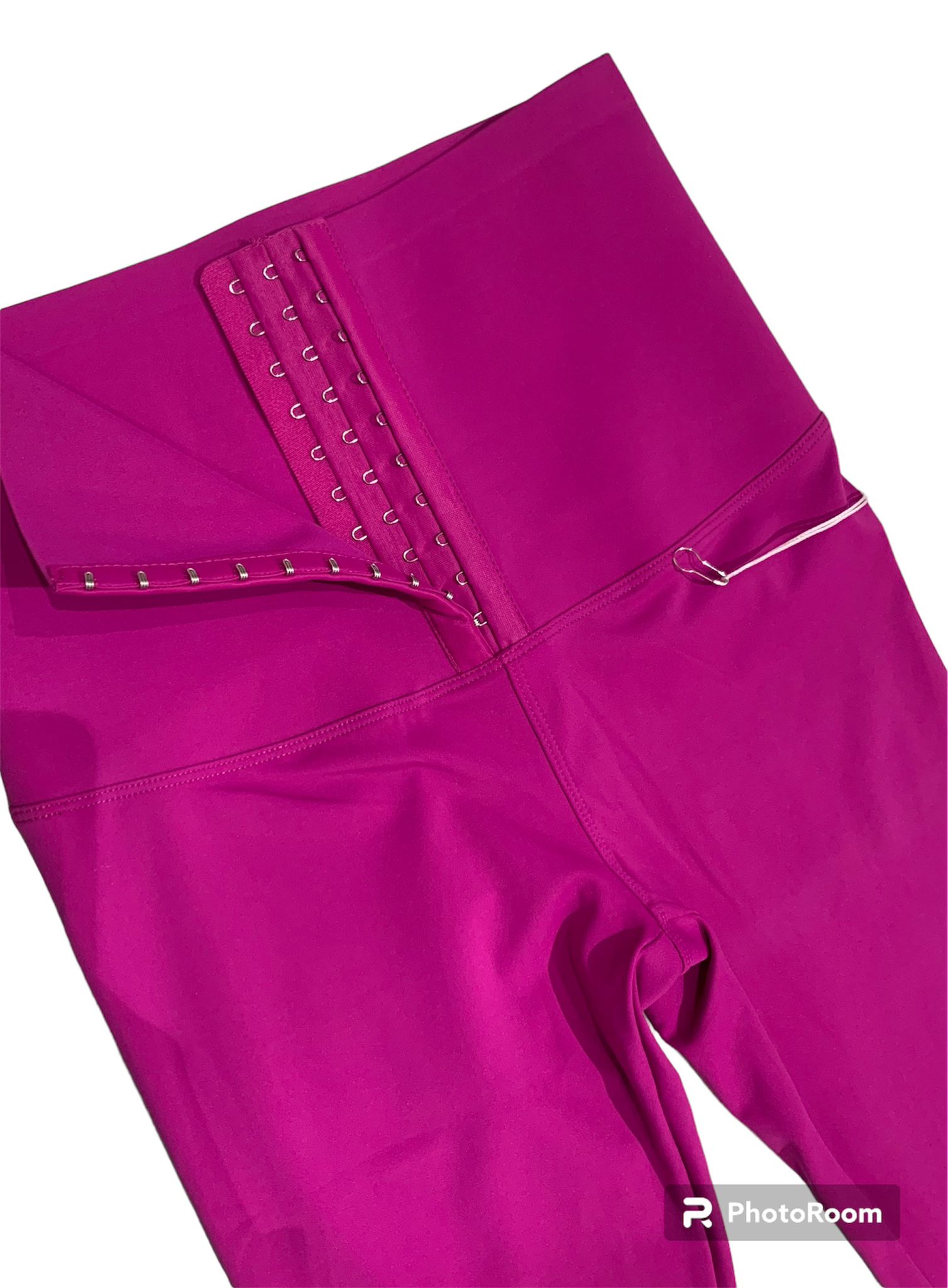 Leggings in tessuto poliamminide ed elastene, la più resistente alla deformazione, per garantirti di ritrovare la stessa bellezza del tuo corpo dopo ogni lavaggio. Grazie alla fascia con effetto bustino regolabile di tre misure tramite gancetti metallici potrai modellare il tuo punto vita riducendolo fino a due taglie, inoltre gli elastici rinforzati ed invisibili sul lato b creeranno un effetto super push up, levigante e contenitivo garantendoti comunque la massima comodità.