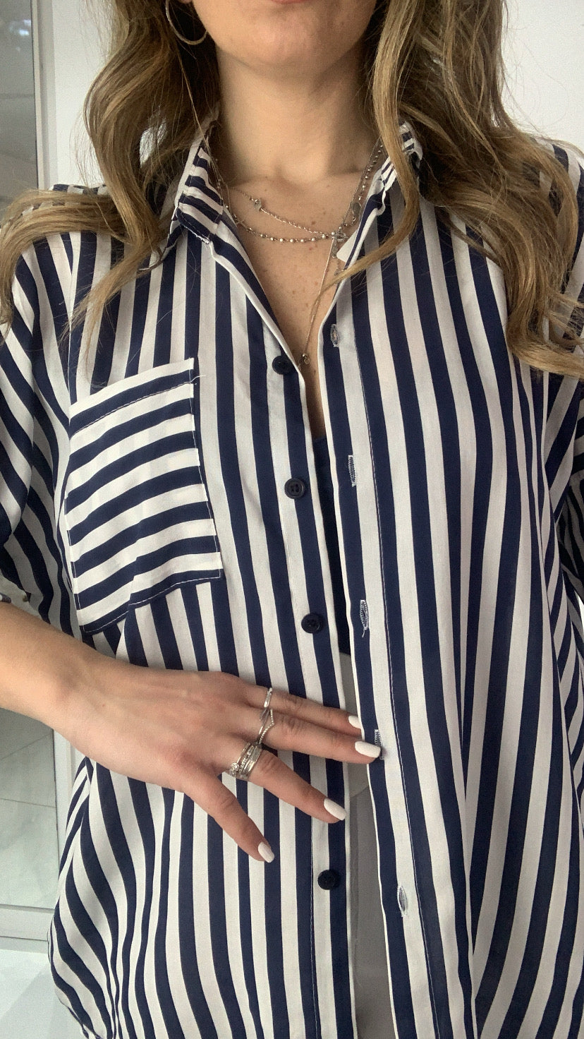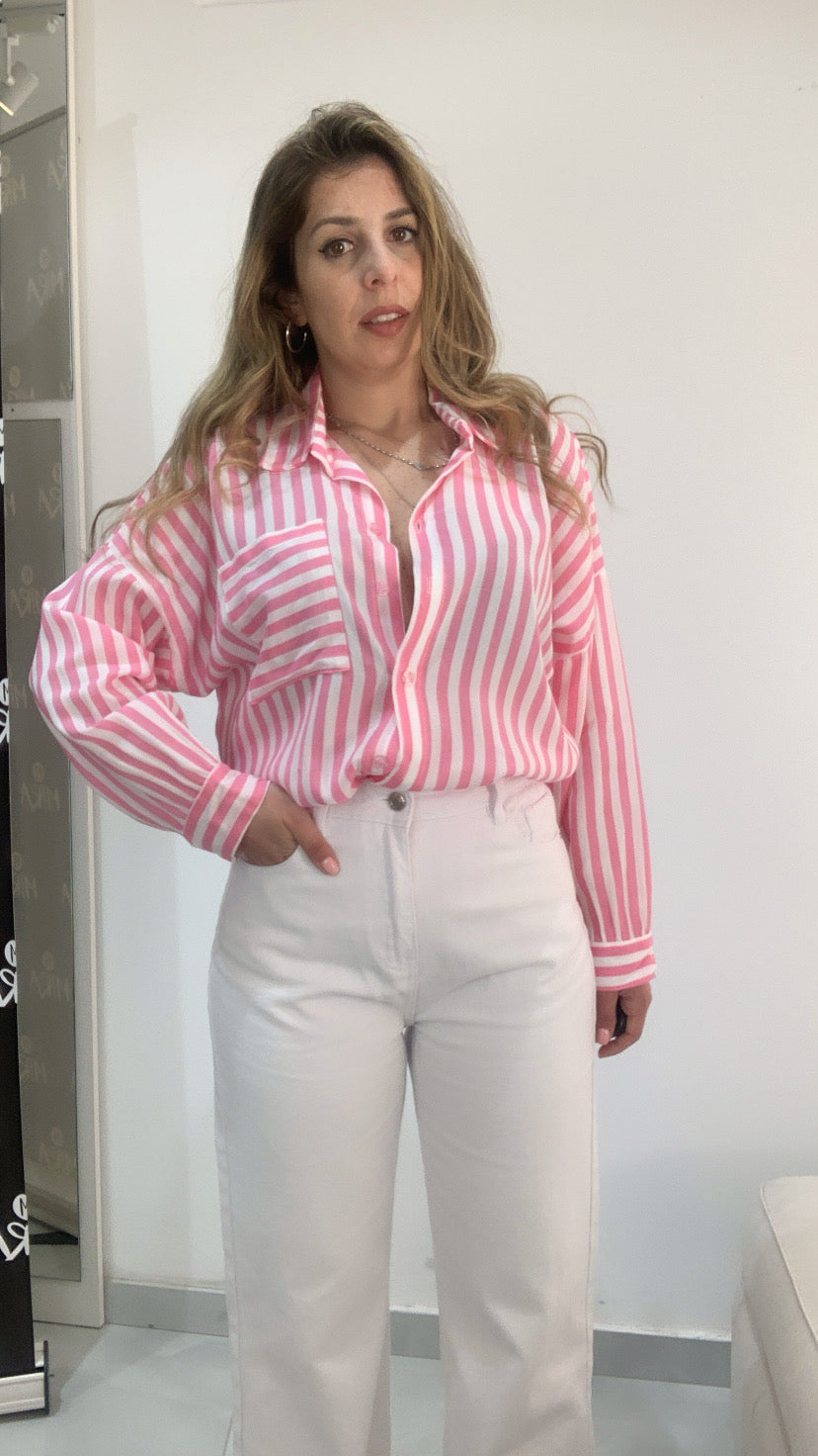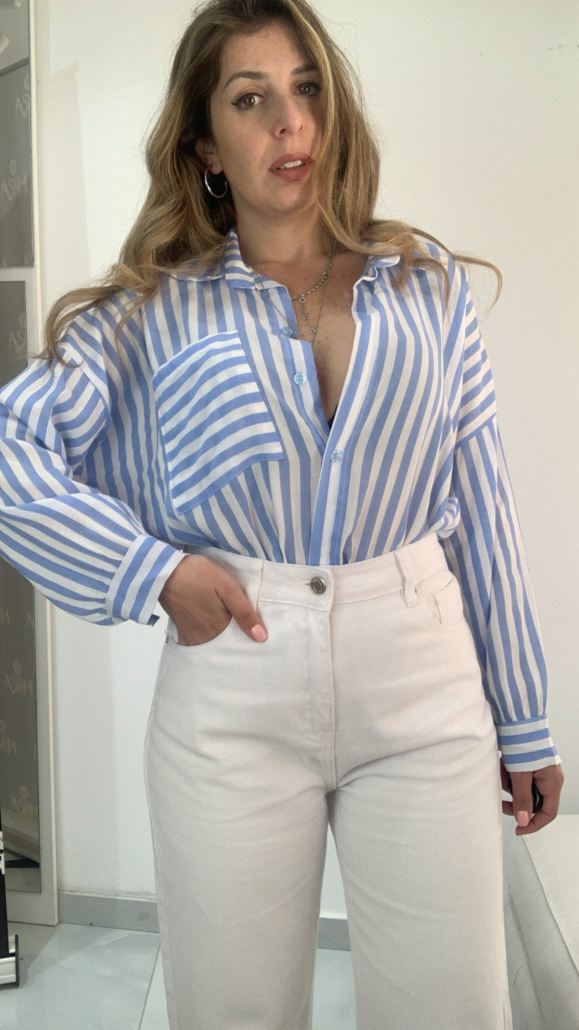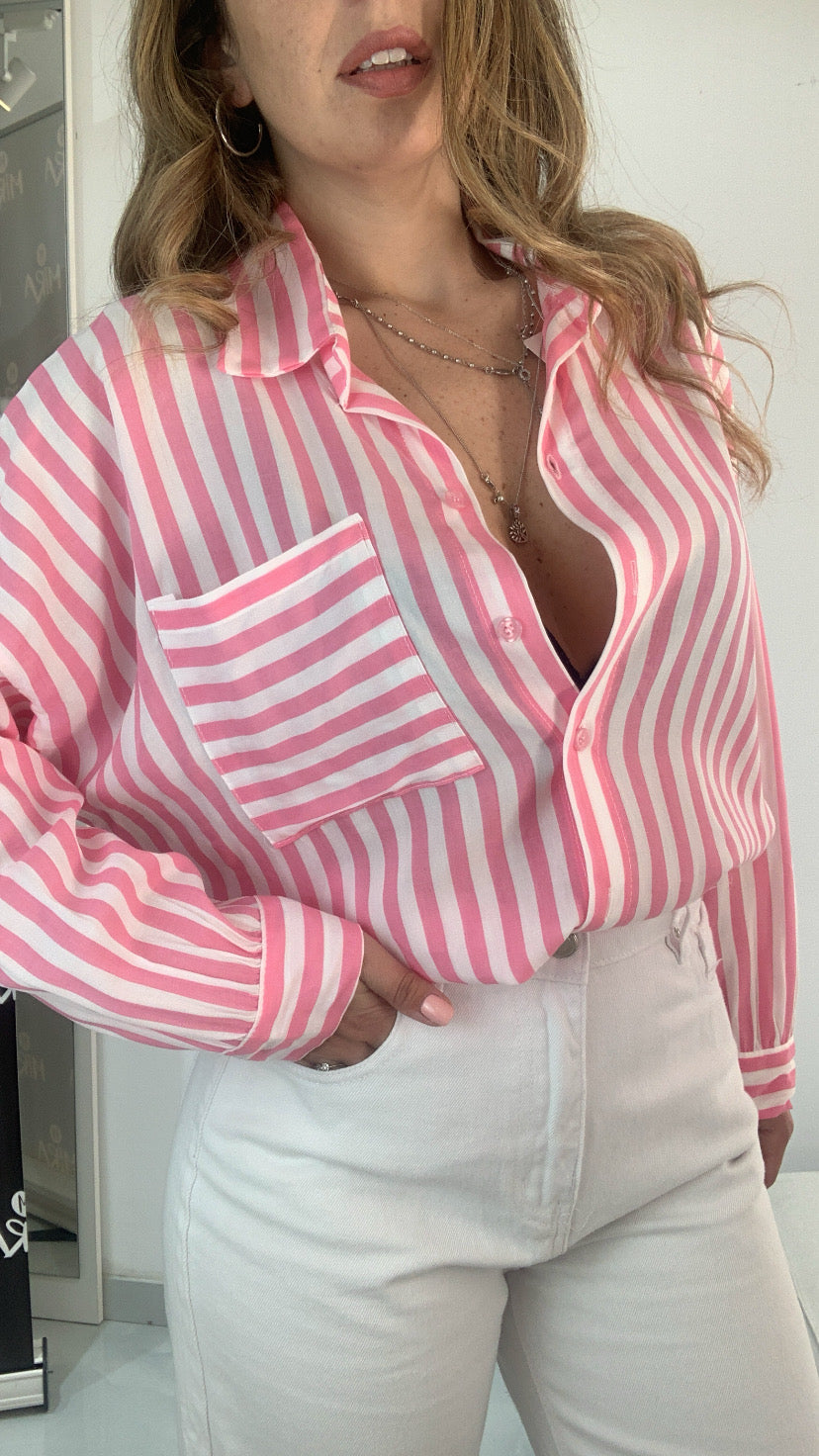 Camicia in viscosa, modello over, chiusura con bottoni sul davanti, lunghezza ai fianchi, taschino sul davanti, vestibilità dalla S alla XXL.