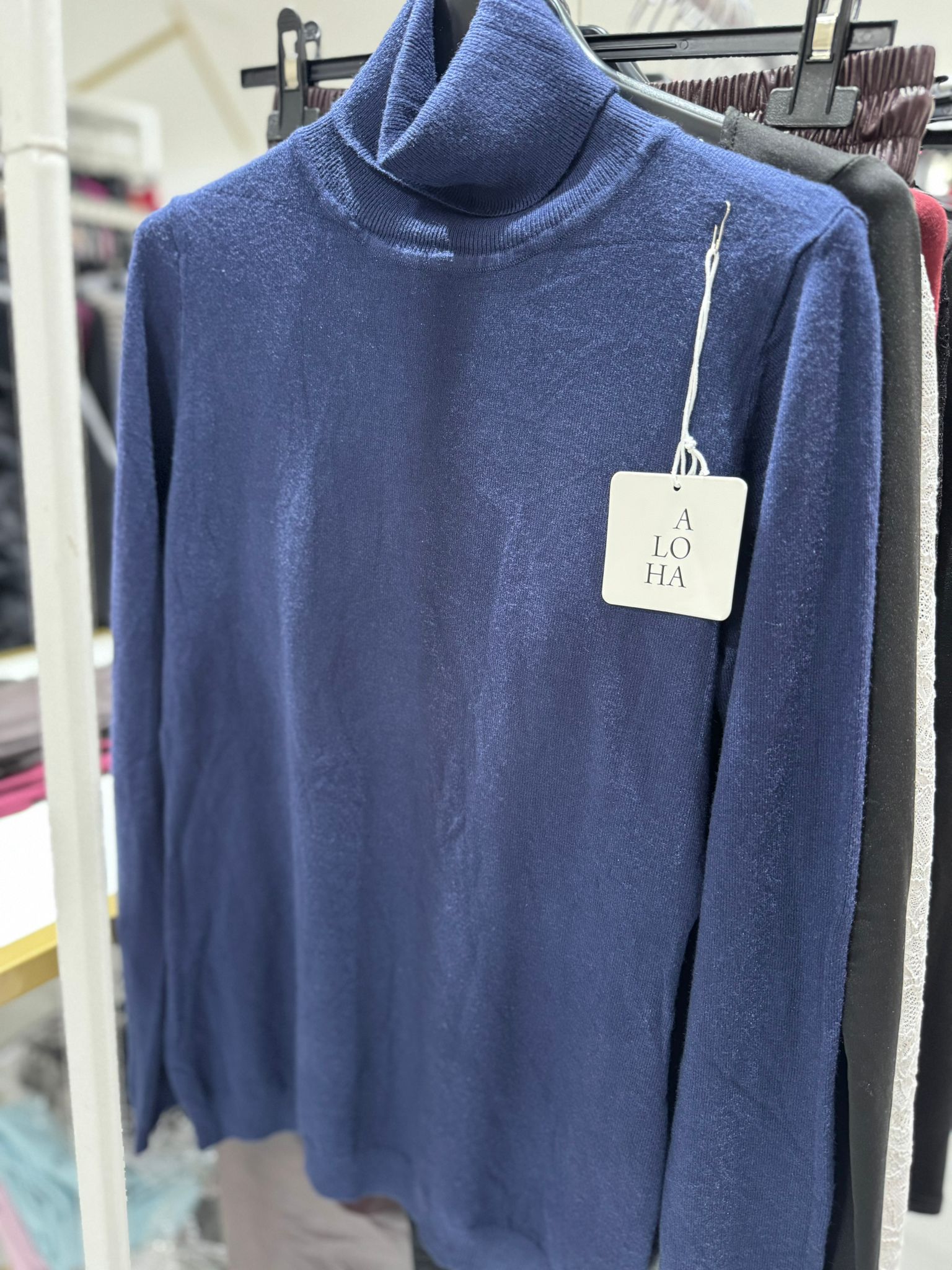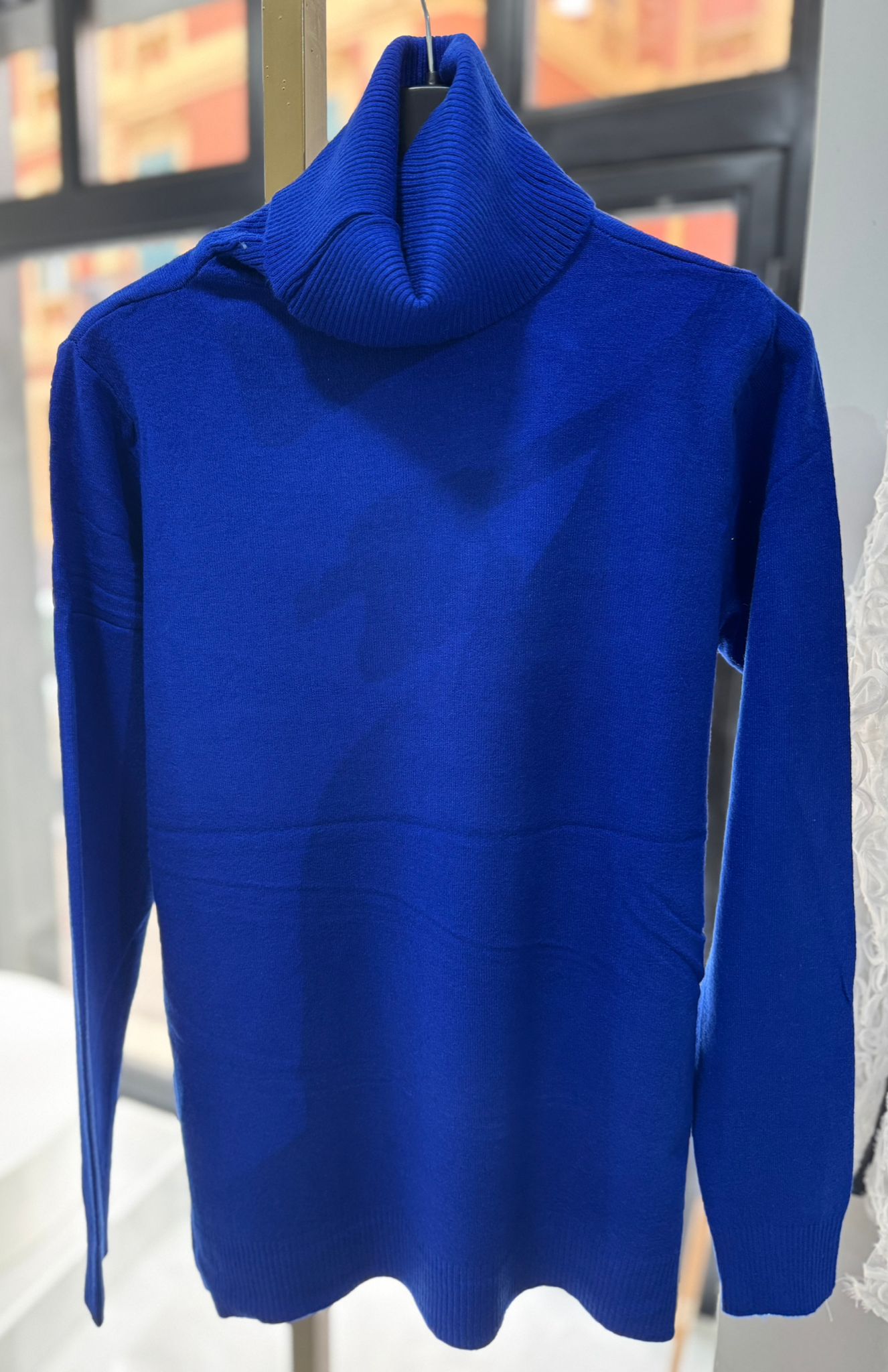 Lupetto in lana rasata morbido e caldo, collo alto risvoltabie, manica lunga confortevole. Taglia unica veste tutte le misure.