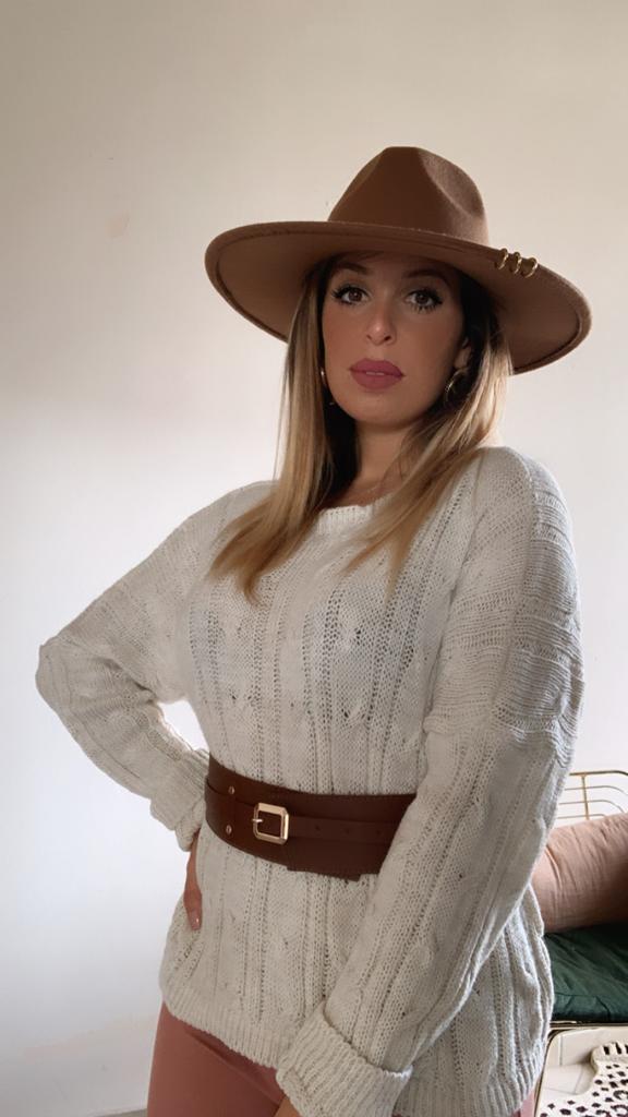 Cappello donna con falda larga e accessorio coordinato