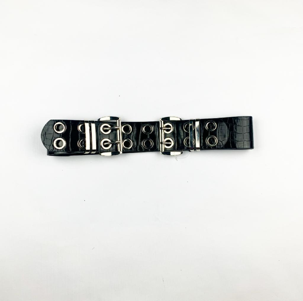 Cintura elastica composta da doppia fibbia, similpelle di coccodrillo