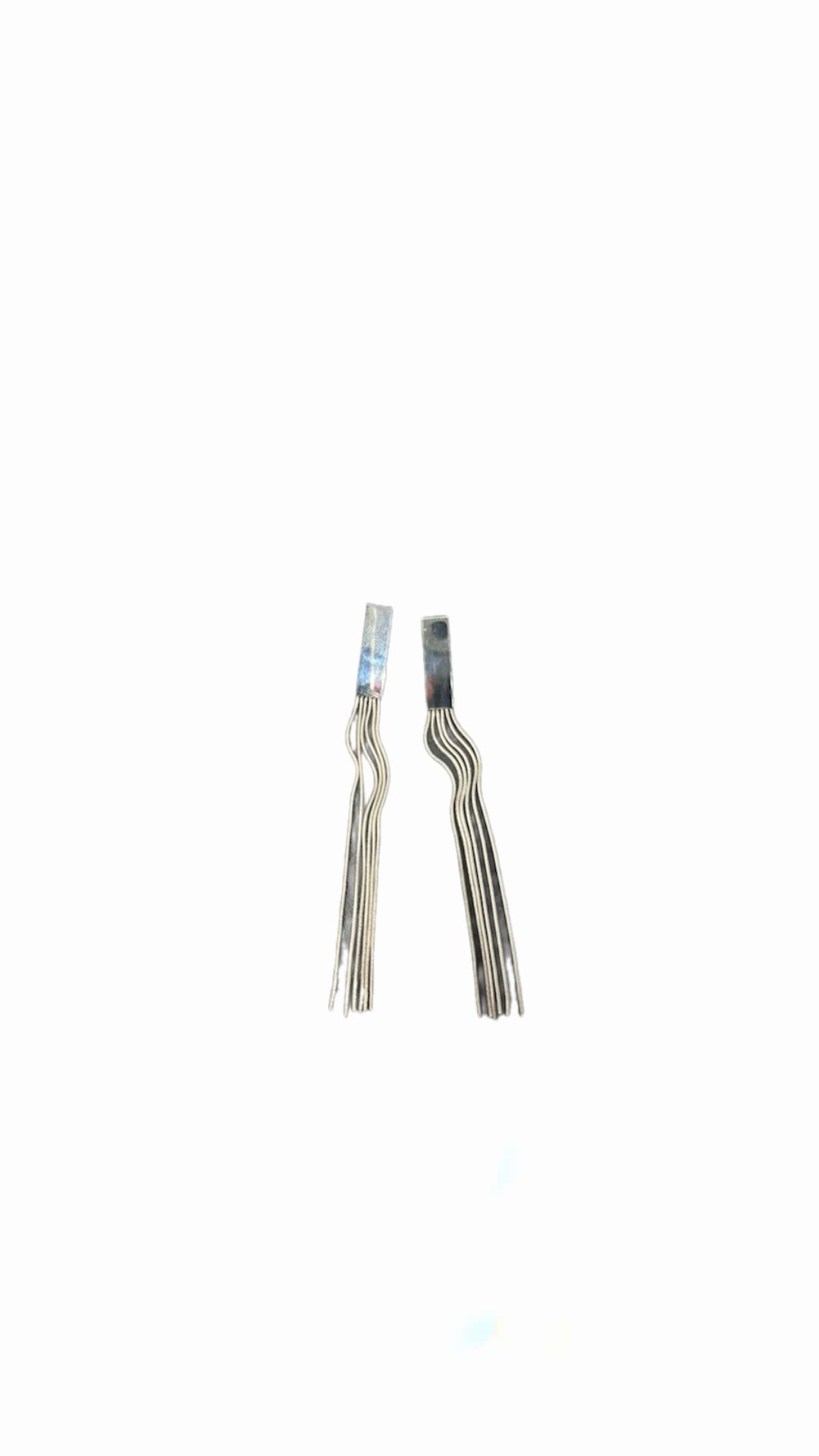 Orecchini a forma rettangolare con lunghe strisce pendenti, un accessorio sofisticato, ideale per chi ama uno stile moderno e distintivo, perfetto sia di giorno che di sera.
